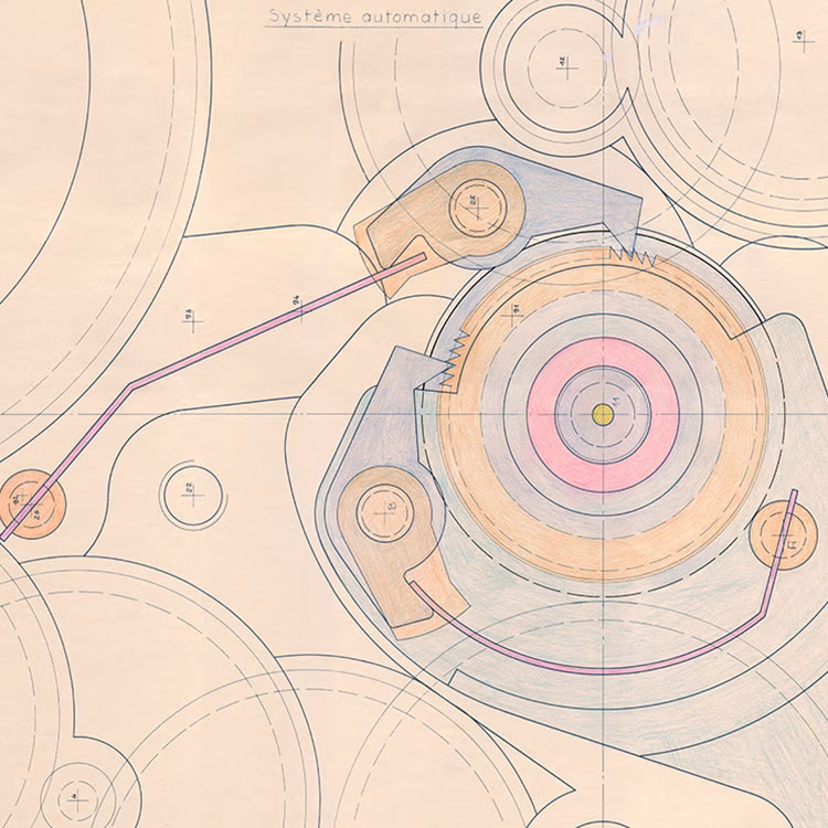 Vor dem Ersten Weltkrieg spielte Audemars Piguet eine Vorreiterrolle bei der Entwicklung komplizierter Armbanduhren. Diese Skizze stellt einen Entwurf für eine Damenarmbanduhr mit Chronographenfunktion (10 Linien) und Minutenrepetition dar.