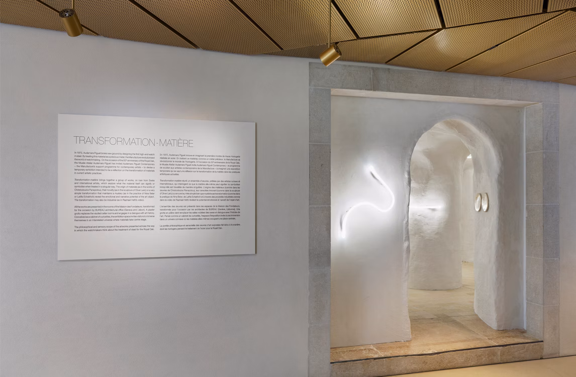 Le Musée Atelier a invité Audemars Piguet Contemporary – le programme d’art de la Manufacture qui commissionne et soutient des artistes contemporains – à monter une exposition temporaire reflétant la transformation de matériaux dans les pratiques artistiques actuelles.