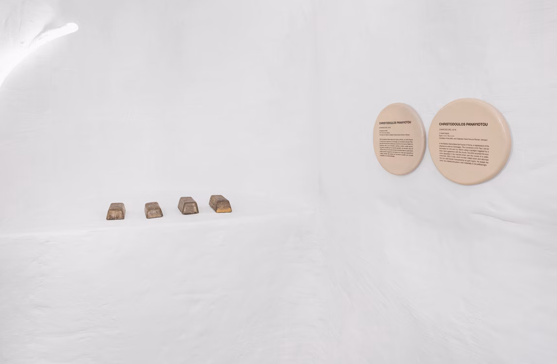 Transformation-matière regroupe des œuvres existantes prêtées par des artistes suisses et internationaux, parmi lesquels Nina Beier, Latifa Echakhch, Raphael Hefti, Olivier Laric et Christodoulos Panayiotou.